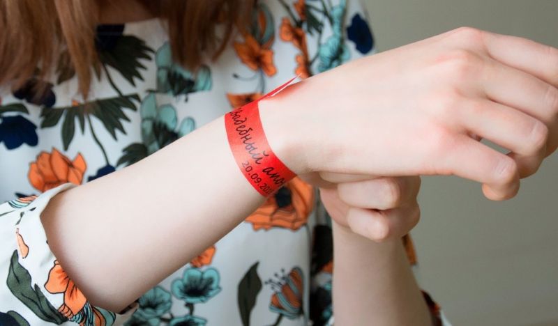 Бумажные браслеты, чаще всего из материала Tyvek, — это самый простой и доступный вариант. Они лёгкие, тонкие и фиксируются с помощью клеевого слоя.