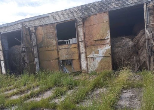 Здания частично разрушены: местами обвалена крыша, повреждены двери. Треста хранилась навалом, рулоны были разорваны, а учет объёмов и качества продукции не велся.