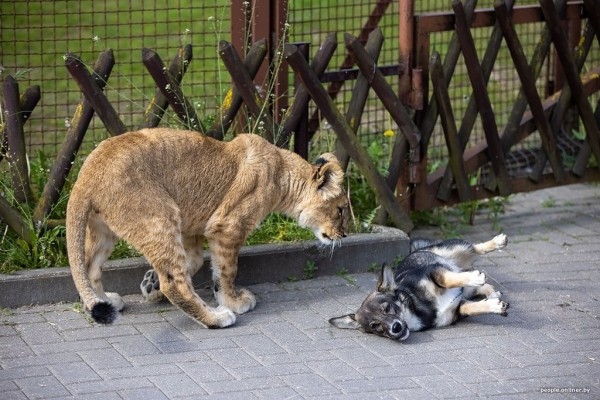 • В минском зоопарке ко львенку, потерявшему маму, подселили щенка